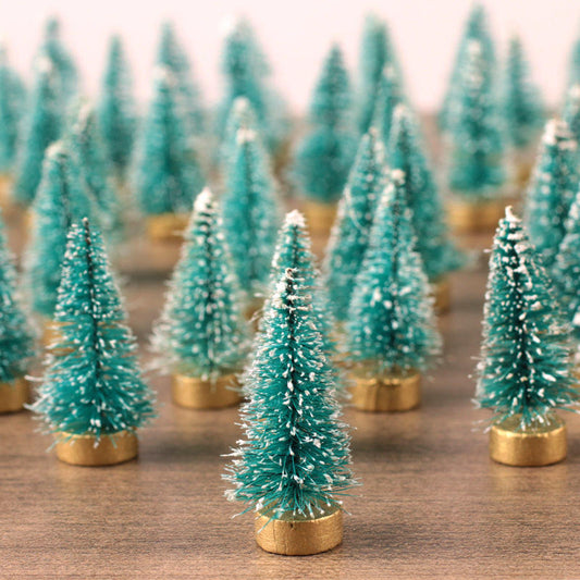 1" Miniature Frosted Green Bottle Brush Trees (12 ct)