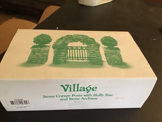 Stone Corner Posts With Holly Tree And Stone Archway