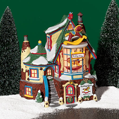 Department 56 North Pole Village Bjorn Turoc Rocking Horse Maker – a collectible lighted building inspired by Santa’s workshop. Whimsical and festive, it’s part of the North Pole Village collection and a perfect addition to any Christmas display.
