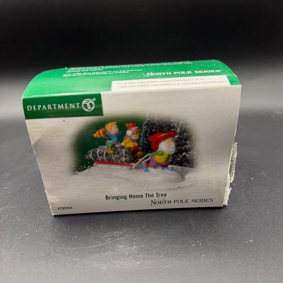 Department 56 North Pole Village Bringing Home the Tree – a collectible accessory inspired by Santa’s workshop. Whimsical and festive, it’s part of the North Pole Village collection and a perfect addition to any Christmas display.