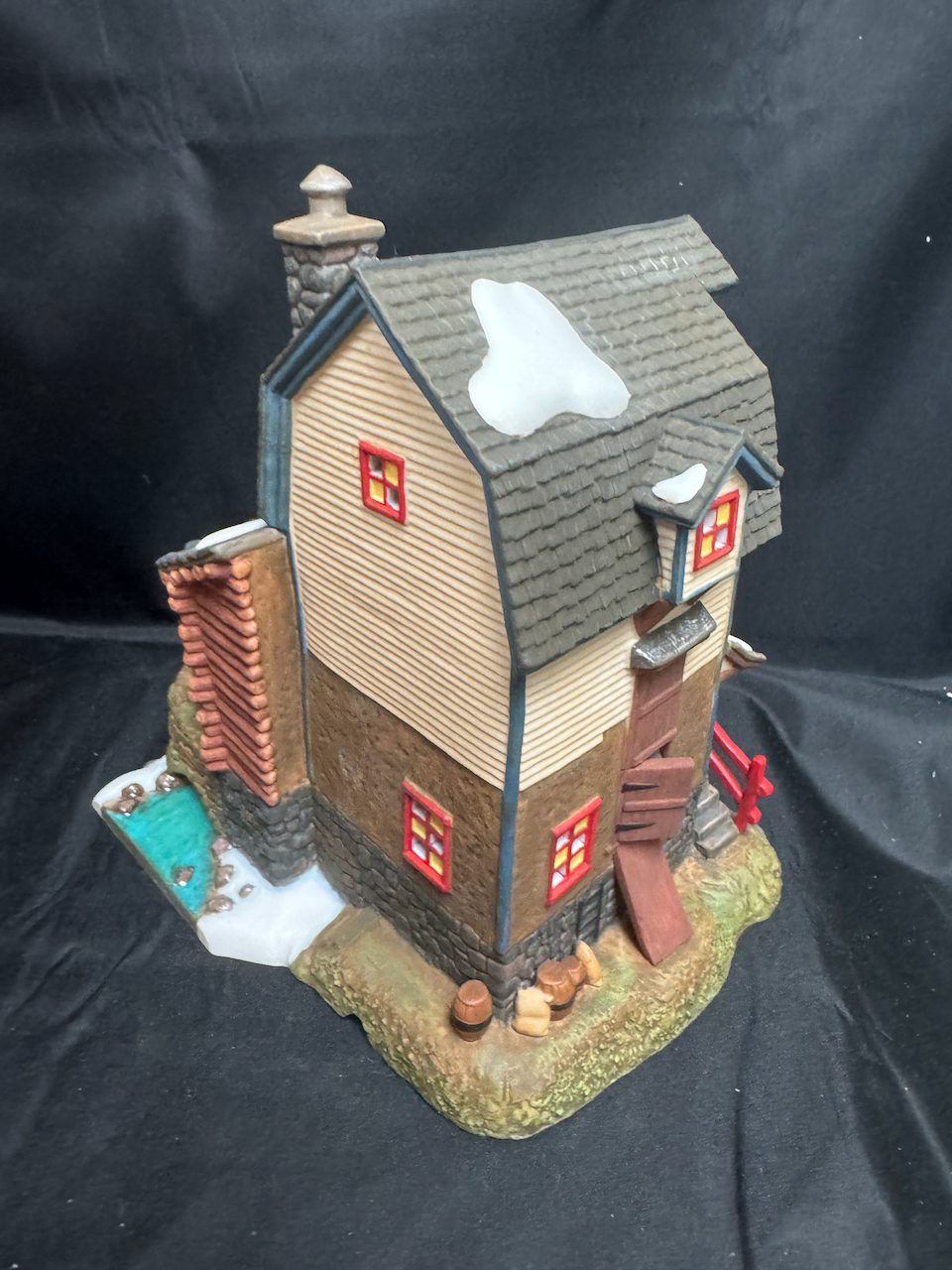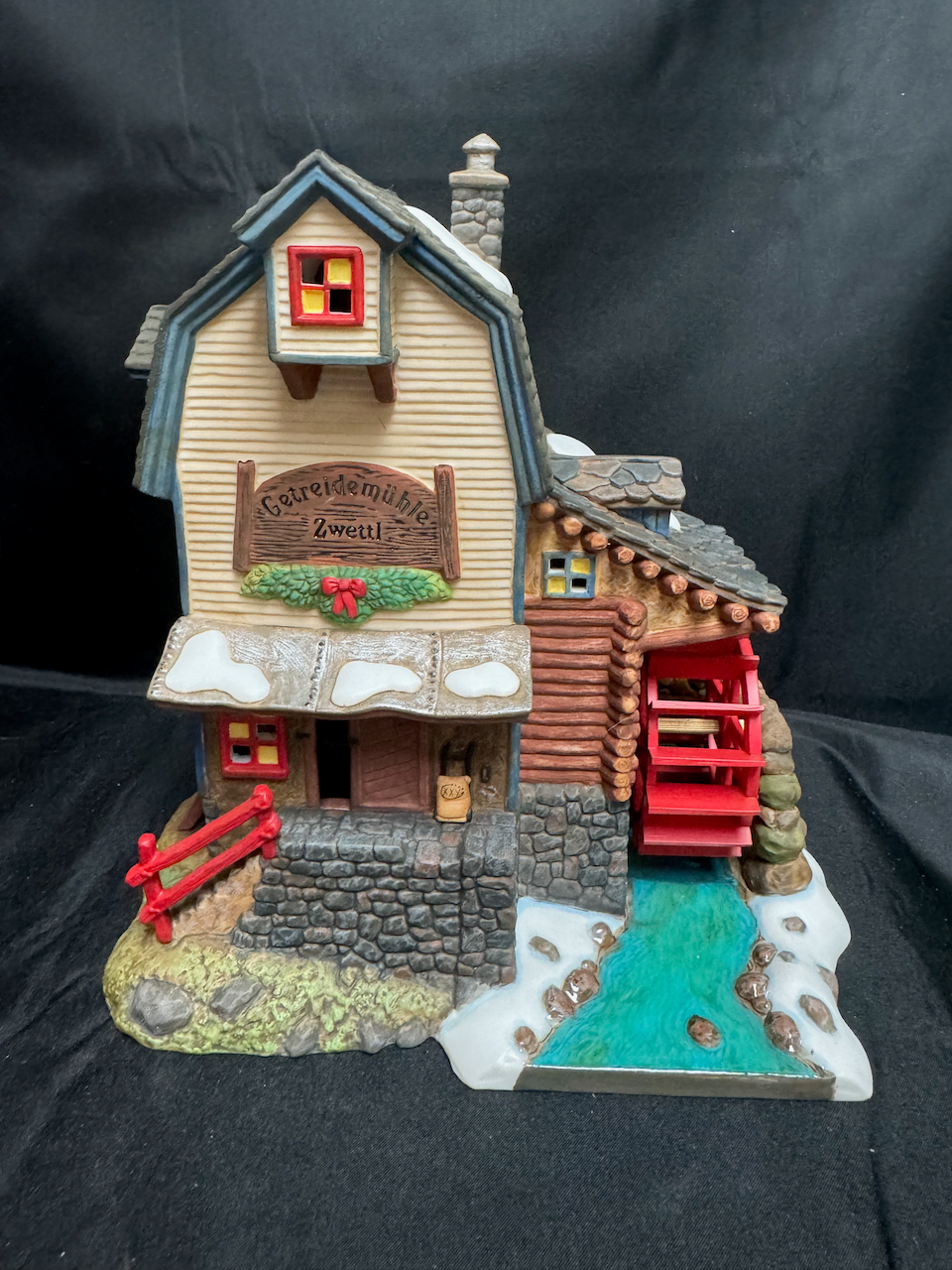 Department 56 Alpine Village Getreidemuhle Zwettl Grain Mill – a collectible lighted building for Christmas village displays. Detailed and charming, it’s part of the Alpine Village collection and a perfect addition to any festive display.