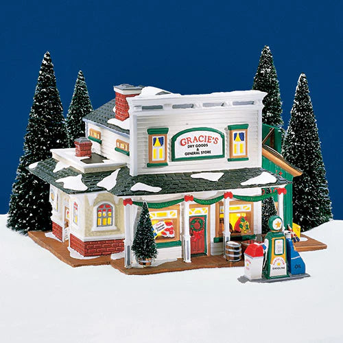 Department 56 Snow Village Gracie’s Dry Goods & General Store – a collectible lighted building capturing the spirit of small-town Christmas. Full of charm and festive detail, it’s part of the Snow Village collection and a perfect addition to any holiday display.