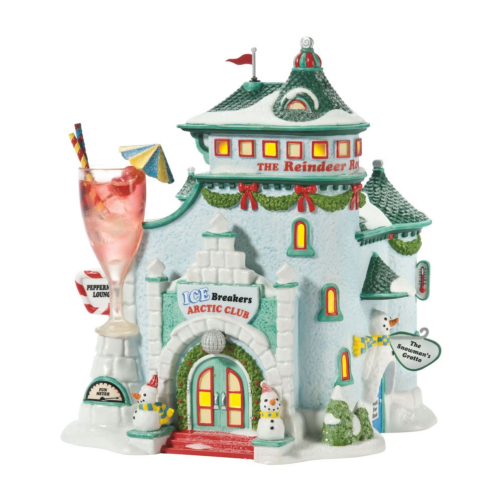 Department 56 North Pole Village Ice Breakers Lounge – a collectible lighted building inspired by Santa’s workshop. Whimsical and festive, it’s part of the North Pole Village collection and a perfect addition to any Christmas display.