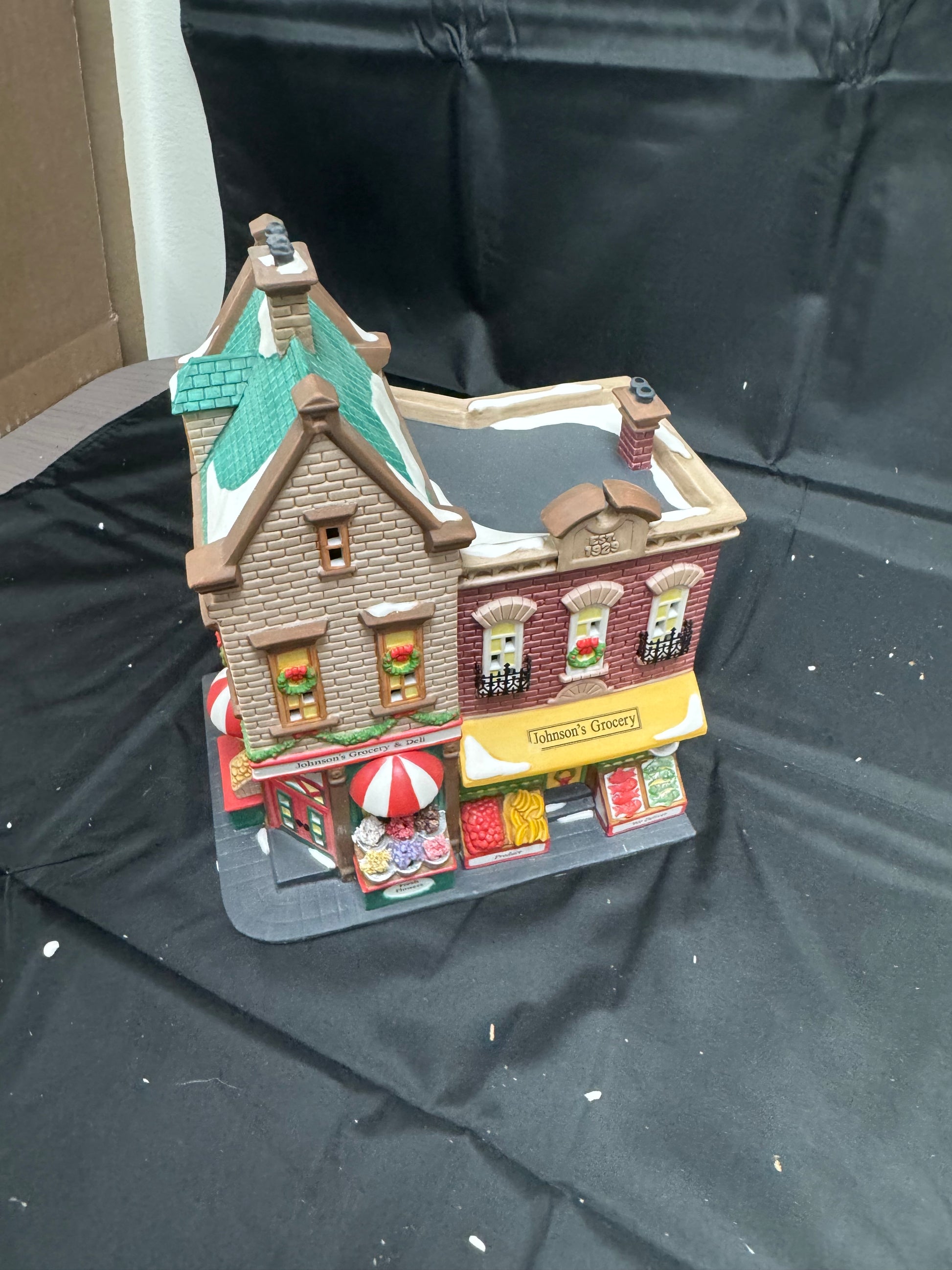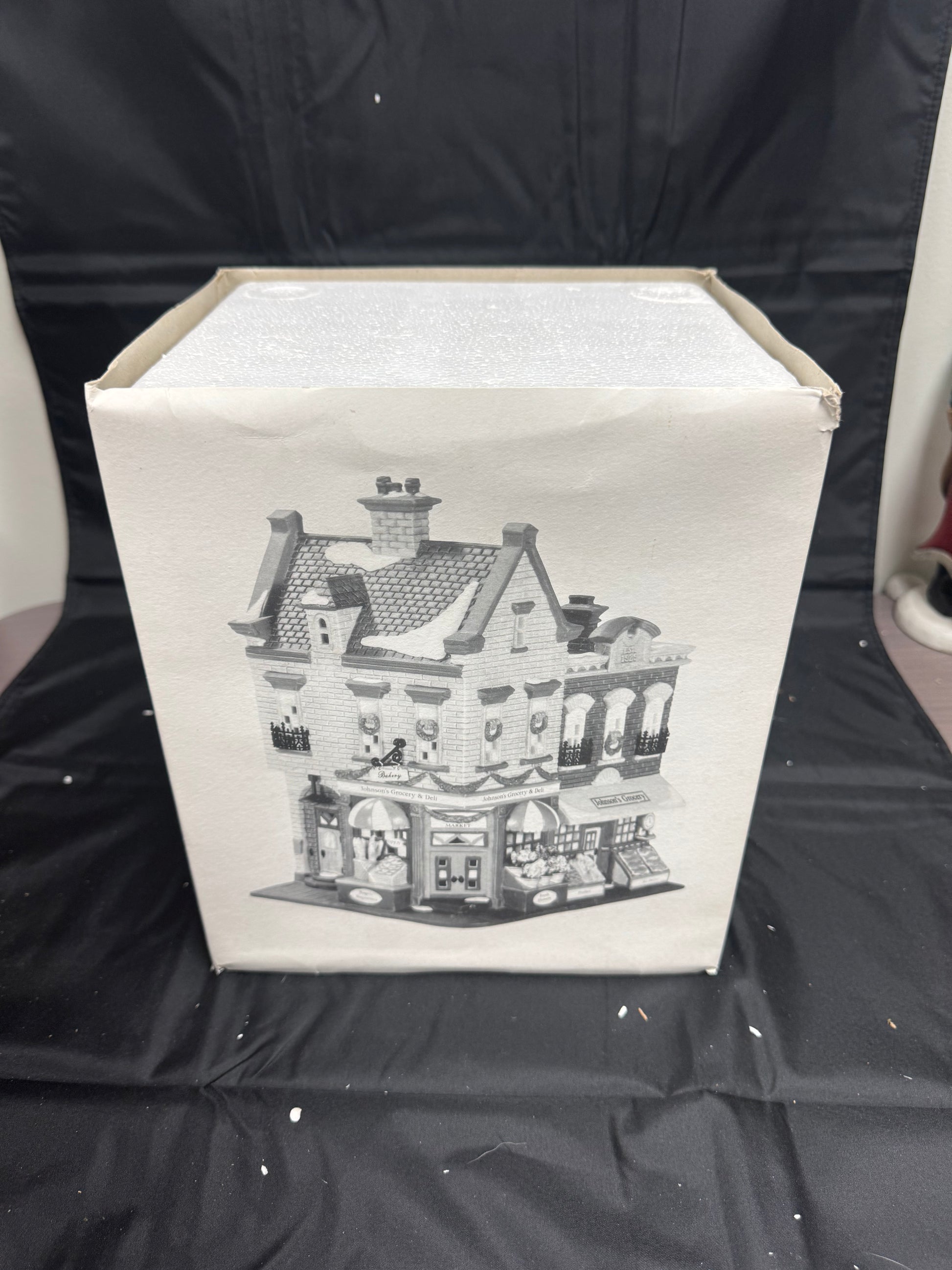 Department 56 Christmas in the City Johnson’s Grocery & Deli – a collectible lighted building for Christmas village displays. Detailed and elegant, it’s part of the Christmas in the City collection and a perfect addition to any festive display.