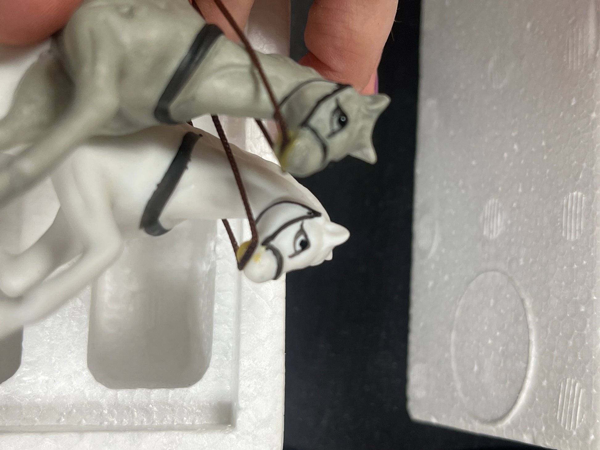 A bit of discolored snow on one side. See photos. Horses mouth may have been glued